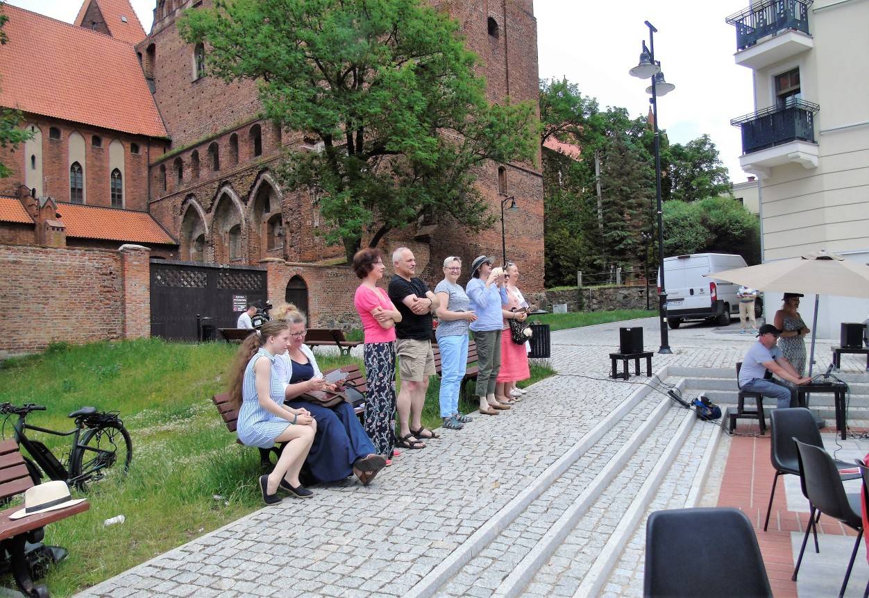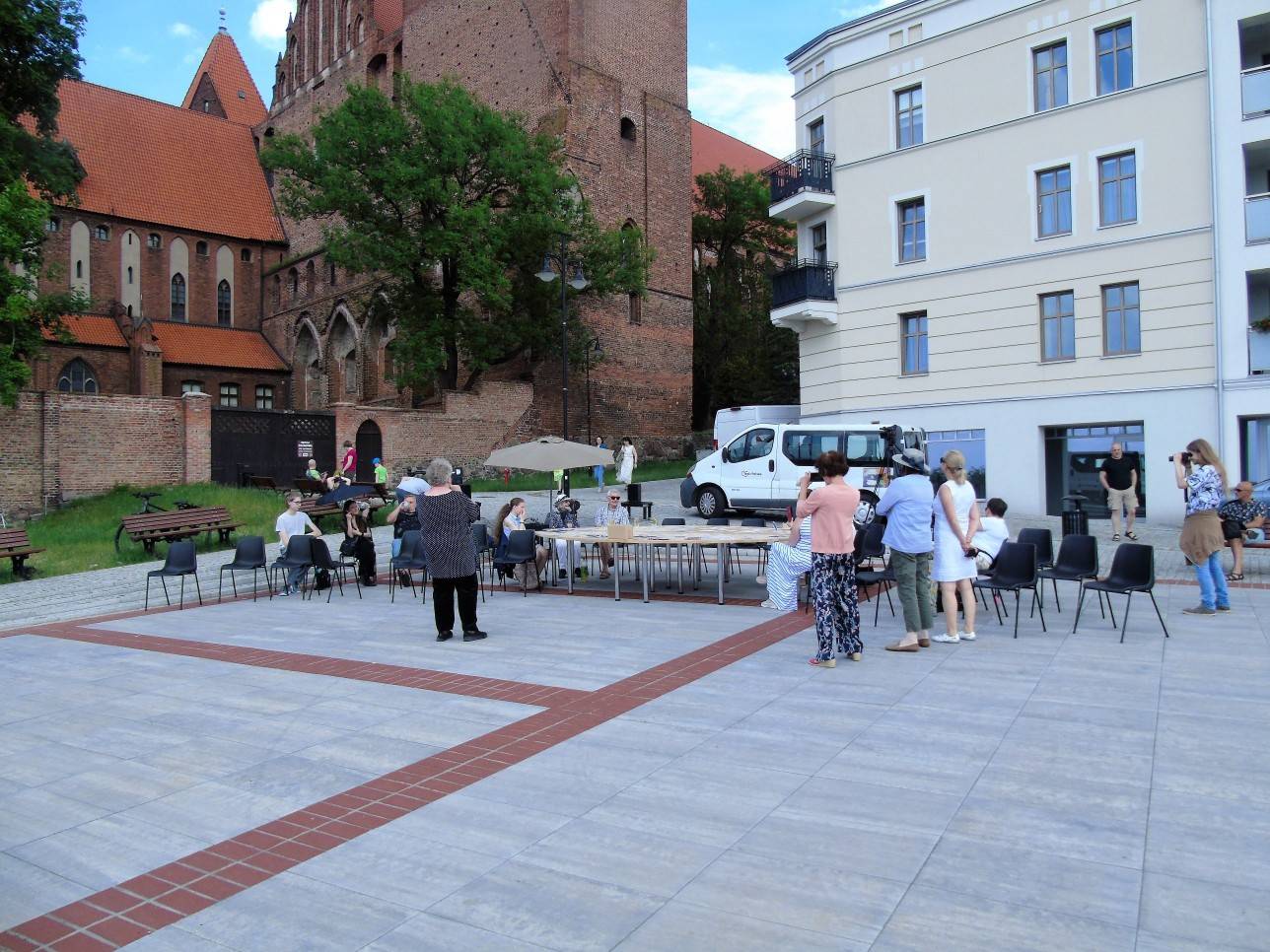 Uczestnicy warsztatów zaprosili mieszkańców Kwidzyna na taras widokowy by weszli w przestrzeń,